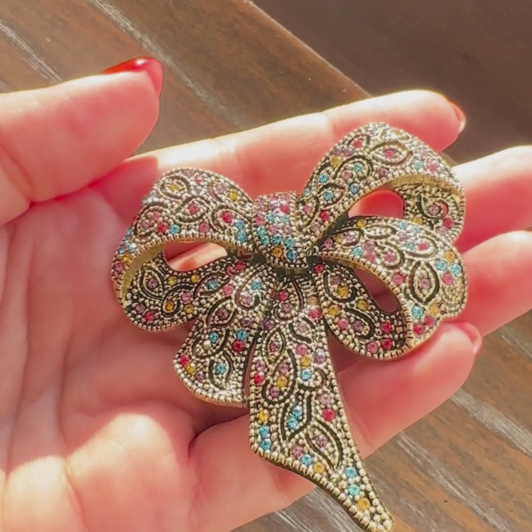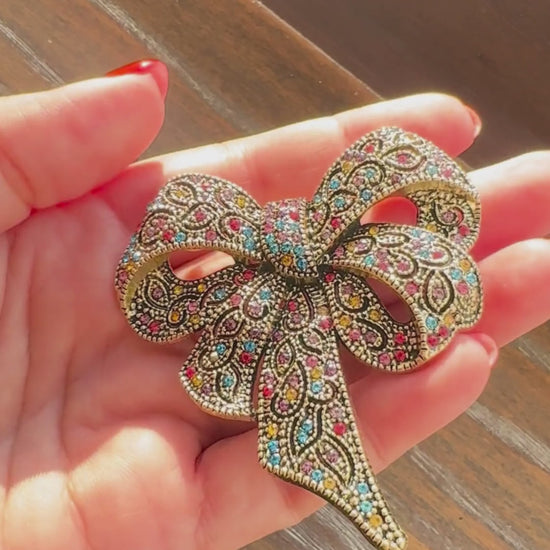 Like a forgotten treasure from a Parisian atelier, this exquisite blue enamel bow brooch whispers of gilded soirées and handwritten love letters tied with silk. Handcrafted in gleaming alloy, its curves dance with a mosaic of precision-cut rhinestones – each catching the light like champagne bubbles in crystal.