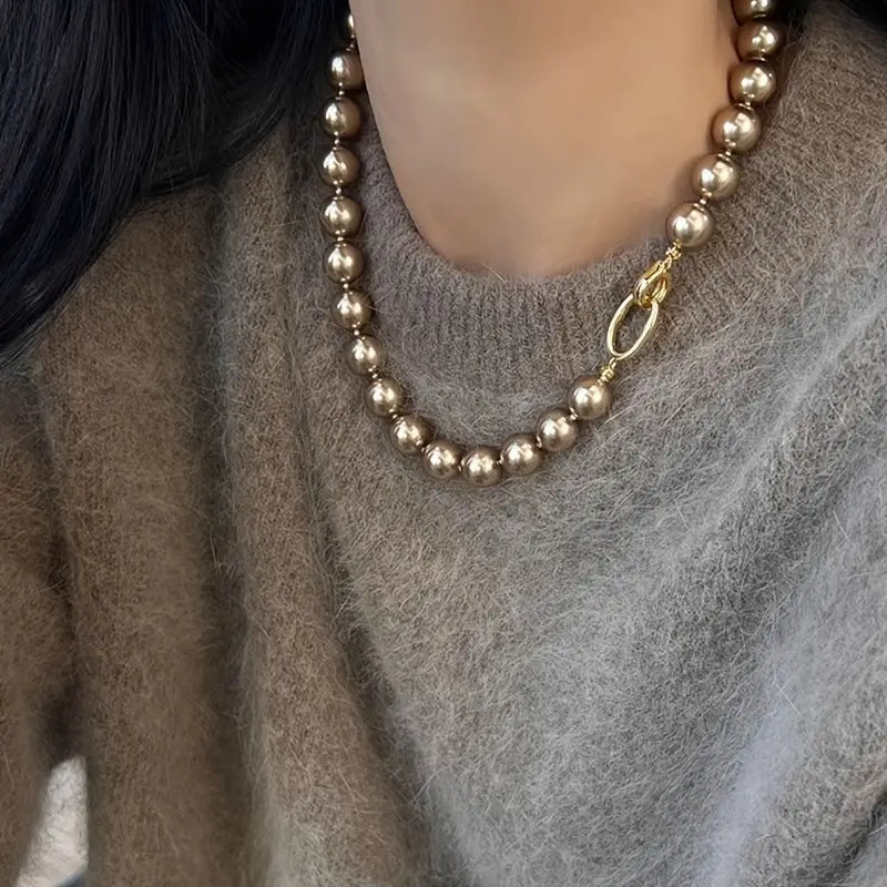 Darling, let this 10mm Mocha Brown Faux Pearl Necklace drape you in the warm, sepia-toned elegance of a bygone era—where every pearl holds the secrets of a jazz-filled soirée and the soft glow of candlelit evenings.